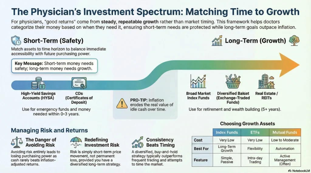 For doctors and physicians new to investing, good returns depend on time frame, cash flow, and risk tolerance. But the basics stay the same: be consistent, keep it simple, and be patient.